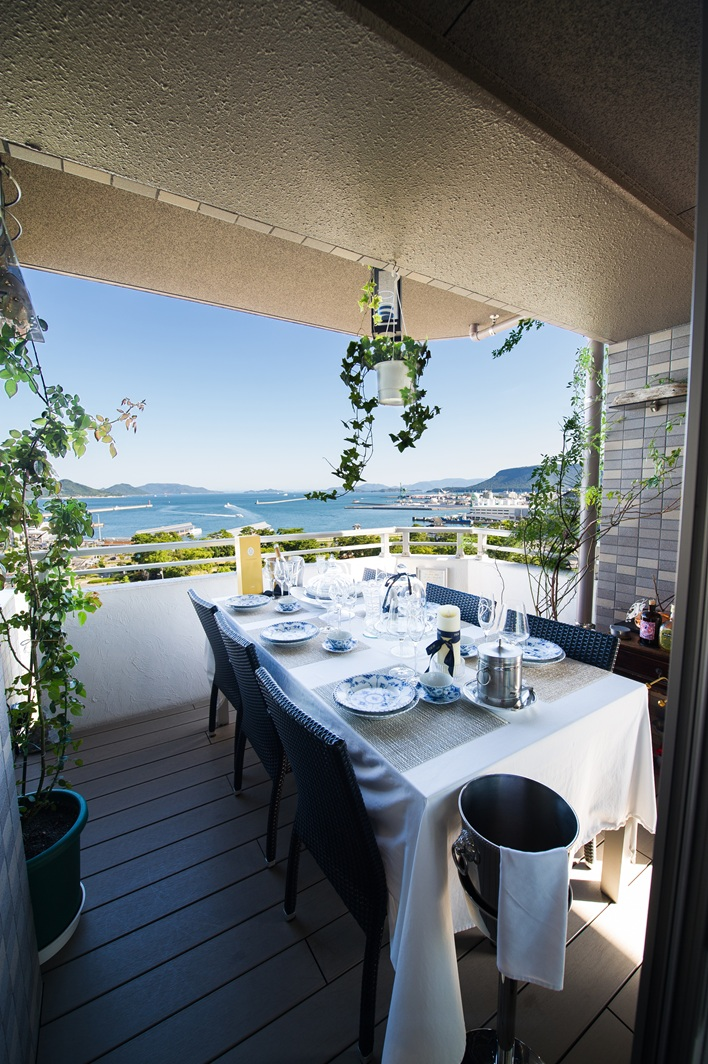 施術後は、静かな空気とやわらかな光に包まれたレストルームでお過ごしいただきます。屋島と瀬戸内が一望できるバルコニーでおくつろぎください。